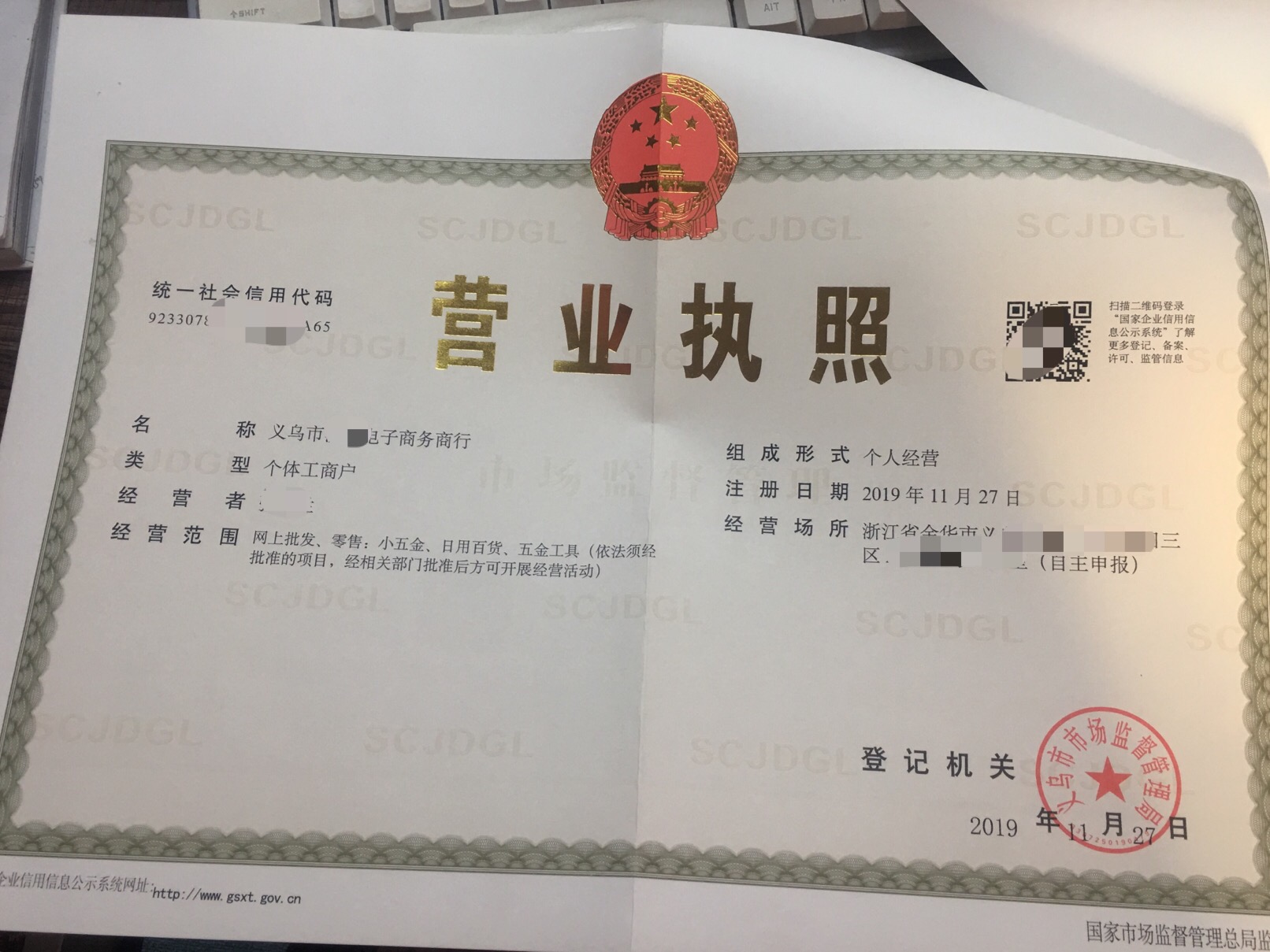 (4)執(zhí)照注冊時間5-10個工作日;(注意:目前注冊義烏個體戶需要上門查看場地了,所以現(xiàn)在辦理周期比之前要慢,一般5-10個工作日,)