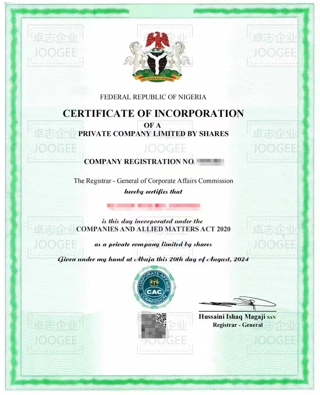 5.獲取CAC頒布的法人證書
