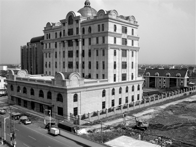 張志熔的老宅,原本是一座始建于上世紀(jì)80年代的三層青色樓房。春節(jié)前后,另一棟樓房,按其標(biāo)準(zhǔn)被克隆而出。長約30米的廊亭,串聯(lián)起老宅與院北高約10層的金頂歐式高樓。