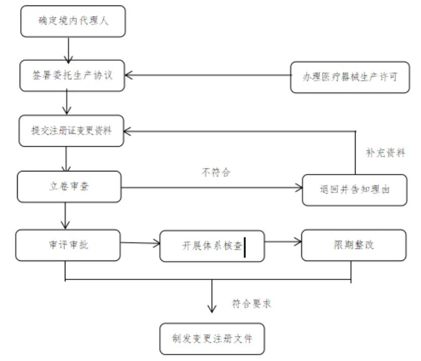 (三)變更醫(yī)療器械注冊證生產(chǎn)地址。代理人協(xié)助港澳醫(yī)療器械注冊人向國家藥監(jiān)局提交符合要求的申請材料。國家藥監(jiān)局器審中心按照程序開展審評審批工作。廣東省藥監(jiān)局按照醫(yī)療器械注冊質(zhì)量體系核查有關(guān)要求、生產(chǎn)質(zhì)量管理規(guī)范及其附錄的要求組織開展現(xiàn)場體系核查。經(jīng)技術(shù)審評及注冊質(zhì)量體系核查,符合要求的,準(zhǔn)予變更注冊,發(fā)放《醫(yī)療器械變更注冊文件》,載明受托生產(chǎn)企業(yè)名稱、生產(chǎn)地址及原注冊證號等信息。