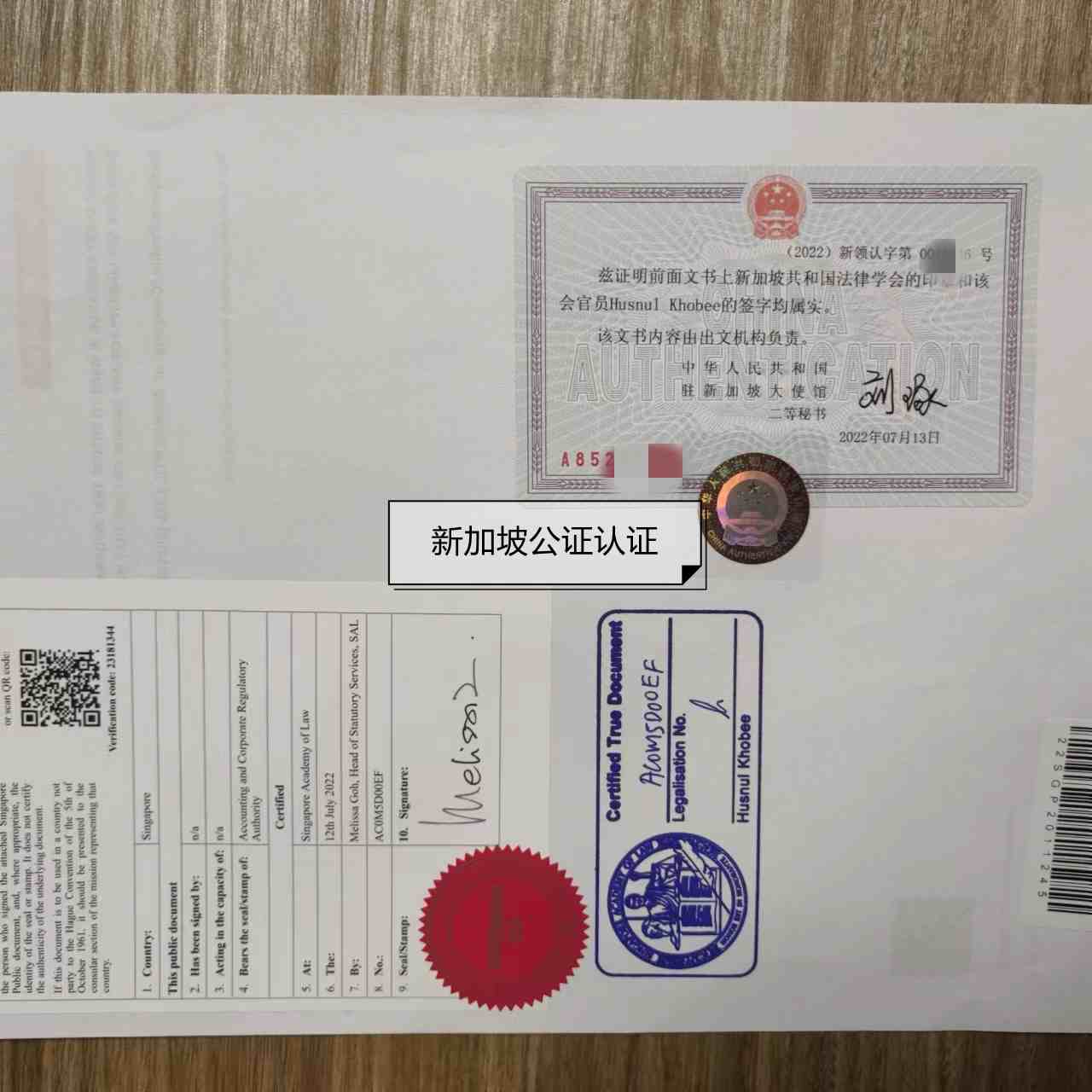 - 新加坡公司文件經(jīng)中國駐新加坡大使館或者領(lǐng)事館領(lǐng)事認(rèn)證