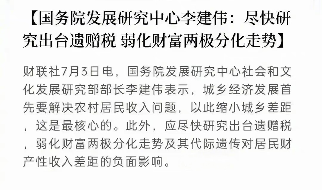 我個人看法,暫時不太適宜出臺任何增稅的舉措,等到我們真的進入到中等發(fā)達國家之列,有大量富人涌現(xiàn)的時候,再來討論不遲,現(xiàn)在還在奮斗爬坡階段,鼓勁干勁為主。