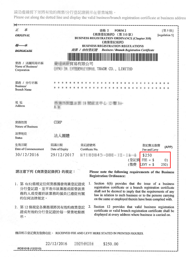 香港注冊(cè)公司營業(yè)執(zhí)照(商業(yè)登記證)、注冊(cè)證書不會(huì)顯示注冊(cè)資金。答