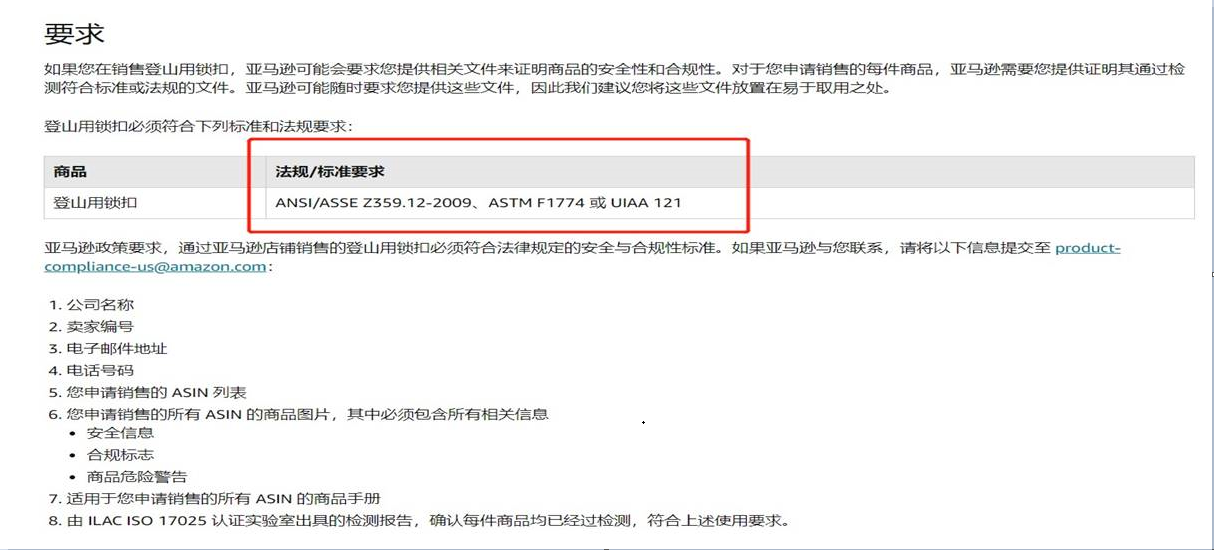 登山扣亞馬遜美國站需要ASTM F1774測試報告