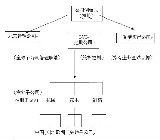 背景介紹:某民營企業(yè)借助于創(chuàng)始人幾十年的創(chuàng)業(yè)和奮斗,在中國、歐洲和美洲分別建立了機械、電器、制藥等三大產(chǎn)品系列的許多公司,但公司與公司之間都是獨立法人,股東均系創(chuàng)始人及不同合作伙伴,且因不同地方公司需遵循不同法律制度,長期以來集團治理結(jié)構(gòu)不完善,資本運作有較多困難,公司創(chuàng)始人對于整個投資的結(jié)構(gòu)安排非常不滿。