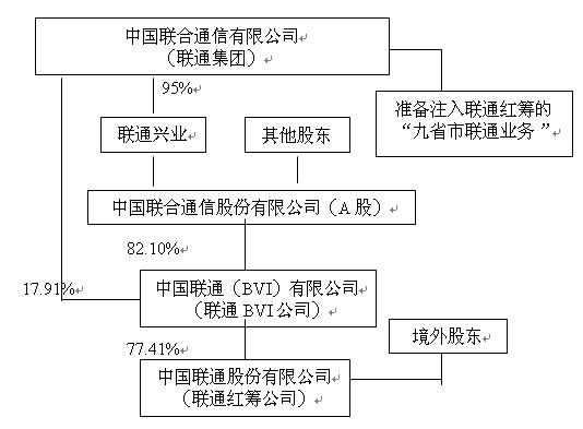 為了將九省市聯(lián)通業(yè)務(wù)順利注入聯(lián)通紅籌公司,聯(lián)通公司設(shè)計了如下的并購方案: