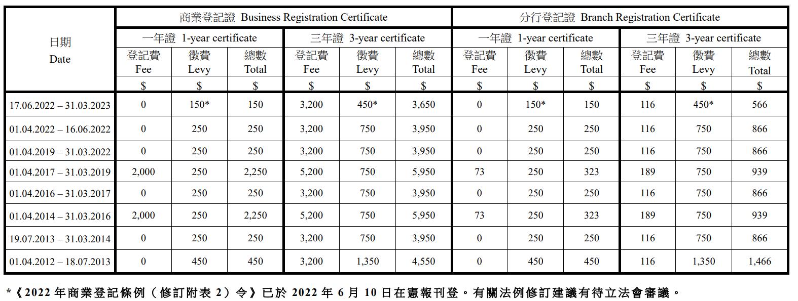 香港公司商業(yè)登記證費(fèi)還是250港幣?