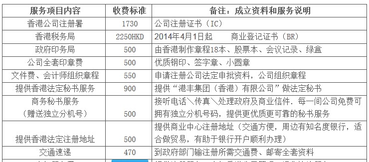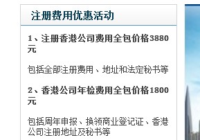 但我可以告訴你,現(xiàn)在注冊(cè)香港公司,香港注冊(cè)處的公司注冊(cè)證書費(fèi)用是1730港幣,香港稅務(wù)局的商業(yè)登記證費(fèi)用是2250港幣,光這兩項(xiàng)費(fèi)用加起來就3980港幣了。這還不包括全套印章費(fèi)、公司其它文件制作費(fèi)、秘書服務(wù)費(fèi)等費(fèi)用。