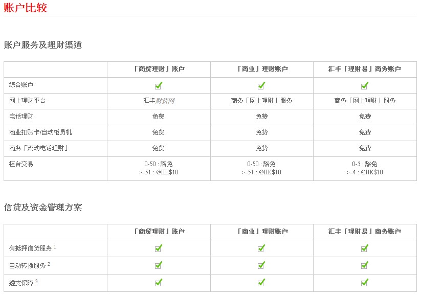 匯豐商貿(mào)理財賬戶,商業(yè)理財賬戶,匯豐理財易商務(wù)賬戶比較: