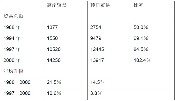 2 香港貿(mào)易結構的發(fā)展變化和離岸貿(mào)易的發(fā)展