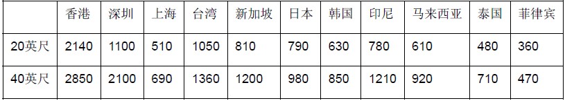 表3 亞洲各大港口的貨柜碼頭處理費 單位:港元