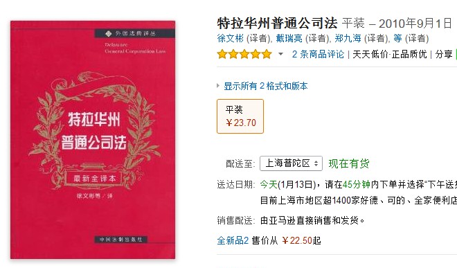 普通公司法近兩年修訂頻繁,修訂內(nèi)容也較廣,僅2009年一年,修訂即達14處之多,這恐怕和美國、乃至世界的經(jīng)濟形勢不無關(guān)系。為了反映特拉華州公司法的最新立法傾向,譯文以2010年生效的普通公司法文本為源文,內(nèi)容涵蓋2010年4月前生效的所有修訂,原文條款沒有任何刪減,是一部反映原文全貌的譯本。