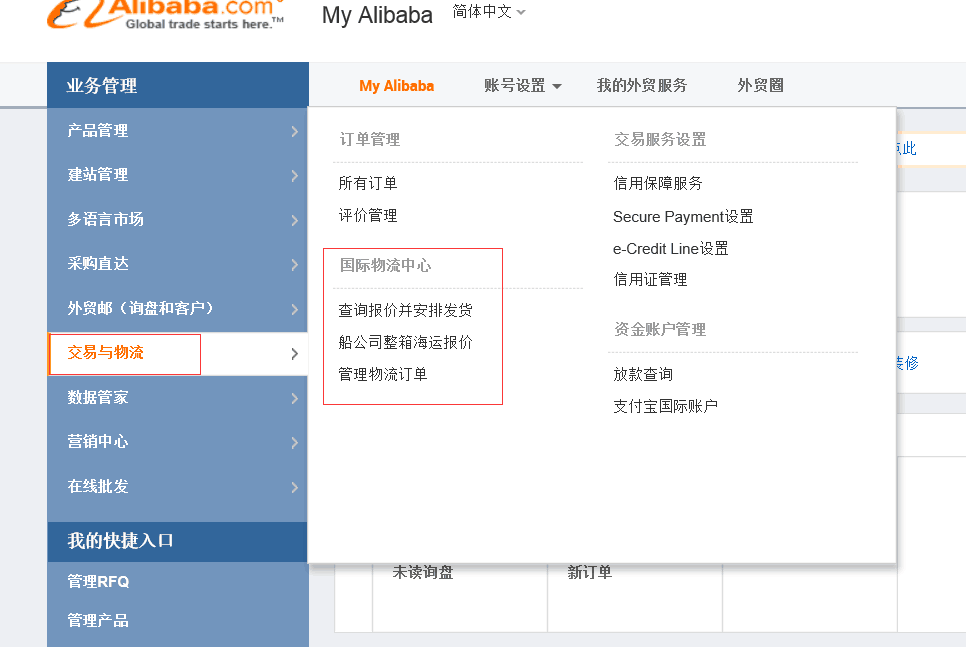 大家有沒有注意到,在阿里巴巴國際站的后臺里面,有一個交易與物流的模塊。通常情況下,我們可以在這里看到客戶下給我們的訂單。
