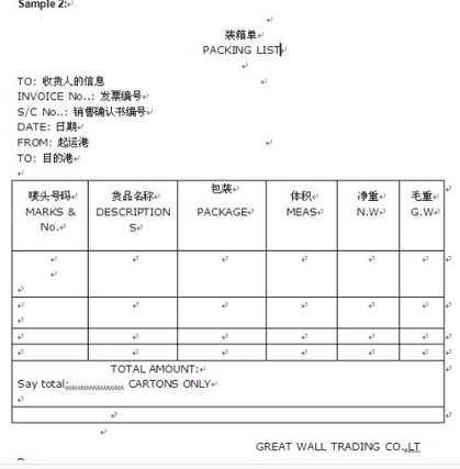 一、填寫示例其實(shí)格式的裝箱單大抵也是如此,自己拋磚引玉。