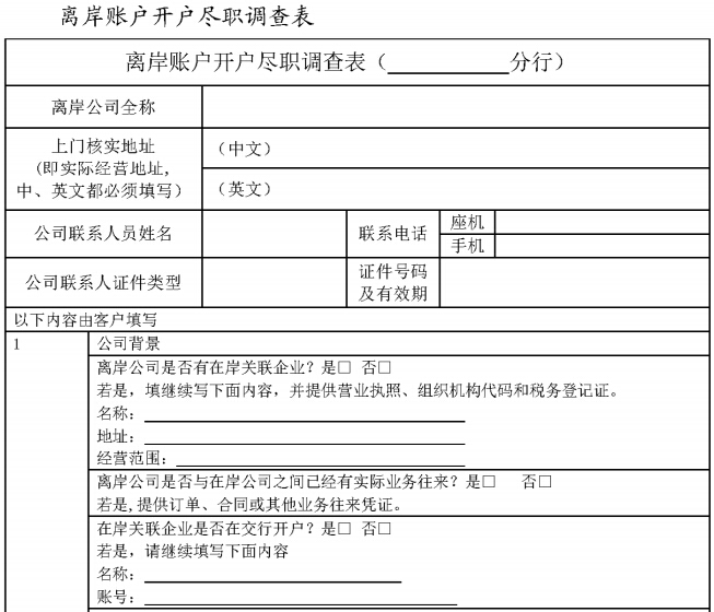 銀行開(kāi)戶(hù)盡職調(diào)查表是必須的,不交就等著關(guān)閉離岸賬戶(hù)。答