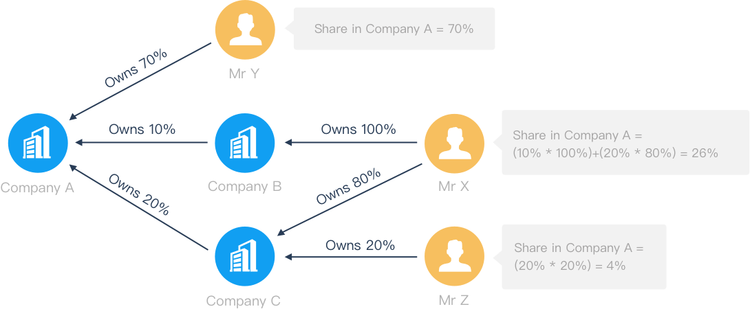 將公司股權(quán)層級及各層級實際占有的股權(quán)出資占比依次加權(quán)求總計算,篩選>=25%的自然人股東。