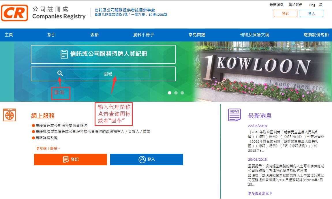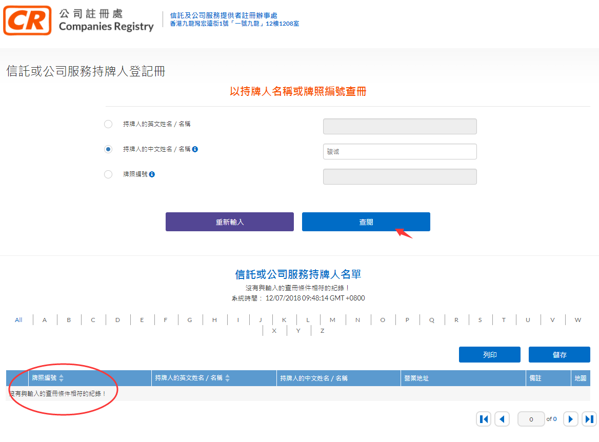 如按以上操作未查詢到結(jié)果,則該代理未辦理信托或公司服務(wù)持牌人牌照,或者牌照未下發(fā)。