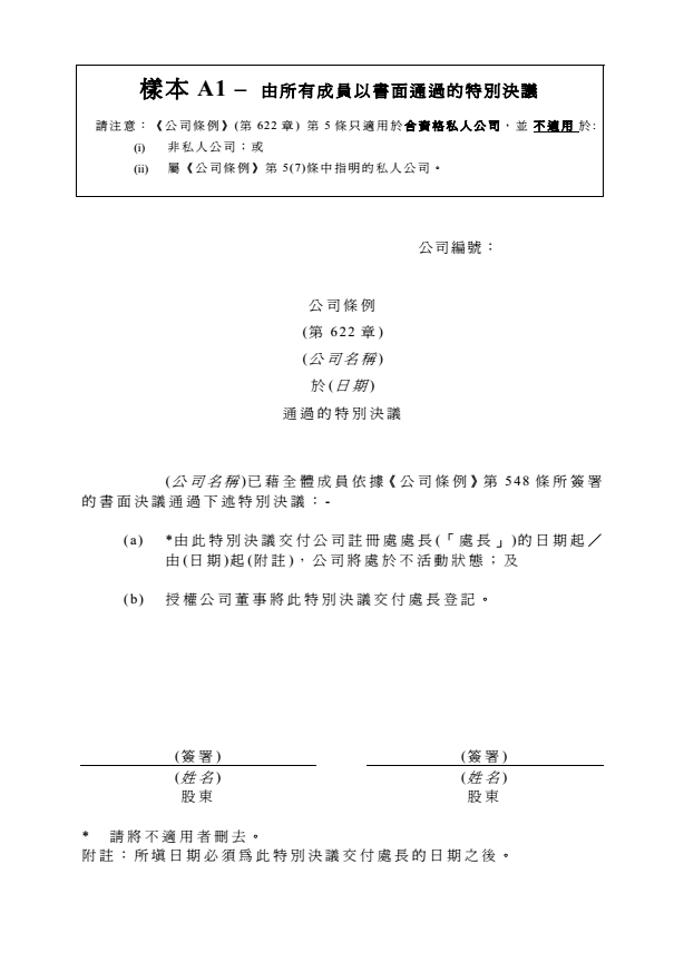 香港公司休止活動(dòng)申請(qǐng)?zhí)畋韄1