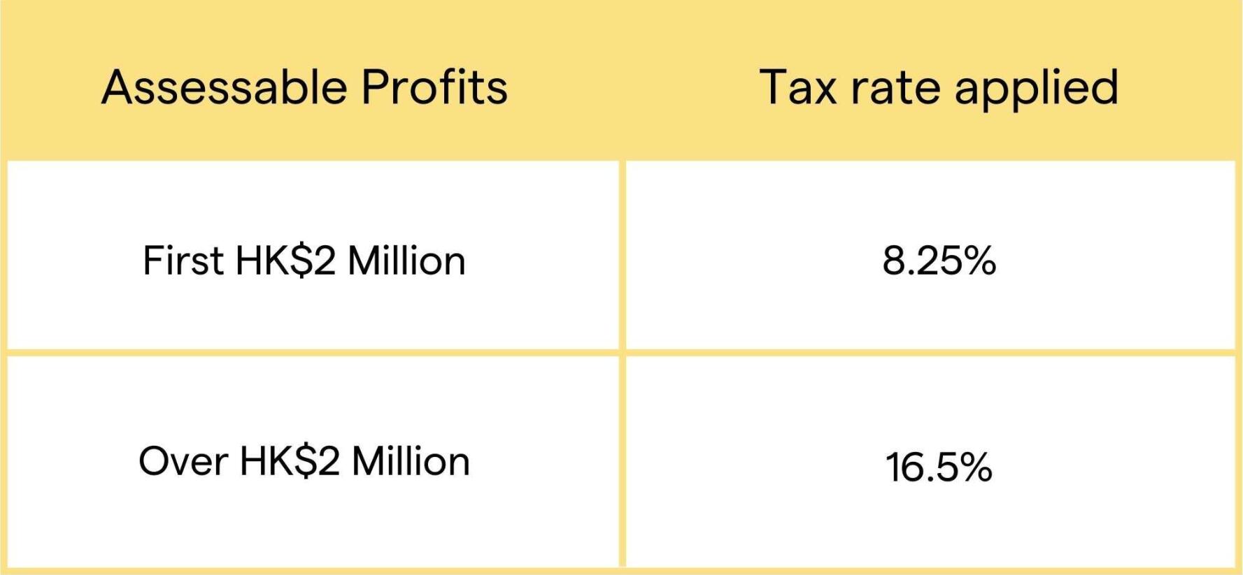 香港企業(yè)利得稅稅率一直都保持 16.5%的稅率。實(shí)行兩級(jí)稅制后,首個(gè)200萬(wàn)利潤(rùn)稅率減半,按8.25%稅率征稅,200萬(wàn)以后的利潤(rùn)按16.5%正常稅率征收。答