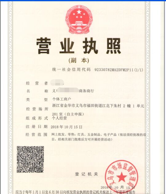 2:個(gè)體戶名稱:義烏市XX電子商務(wù)商行(此名稱工商隨機(jī))