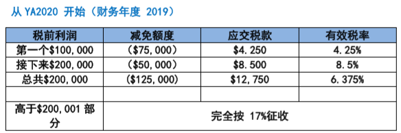 (新加坡新成立公司稅收減免表)