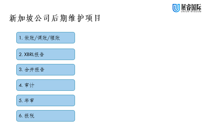 新加坡成立之后,后期是需要做賬、年審和報稅的的,根據(jù)不同公司情況,分為以下6部分: