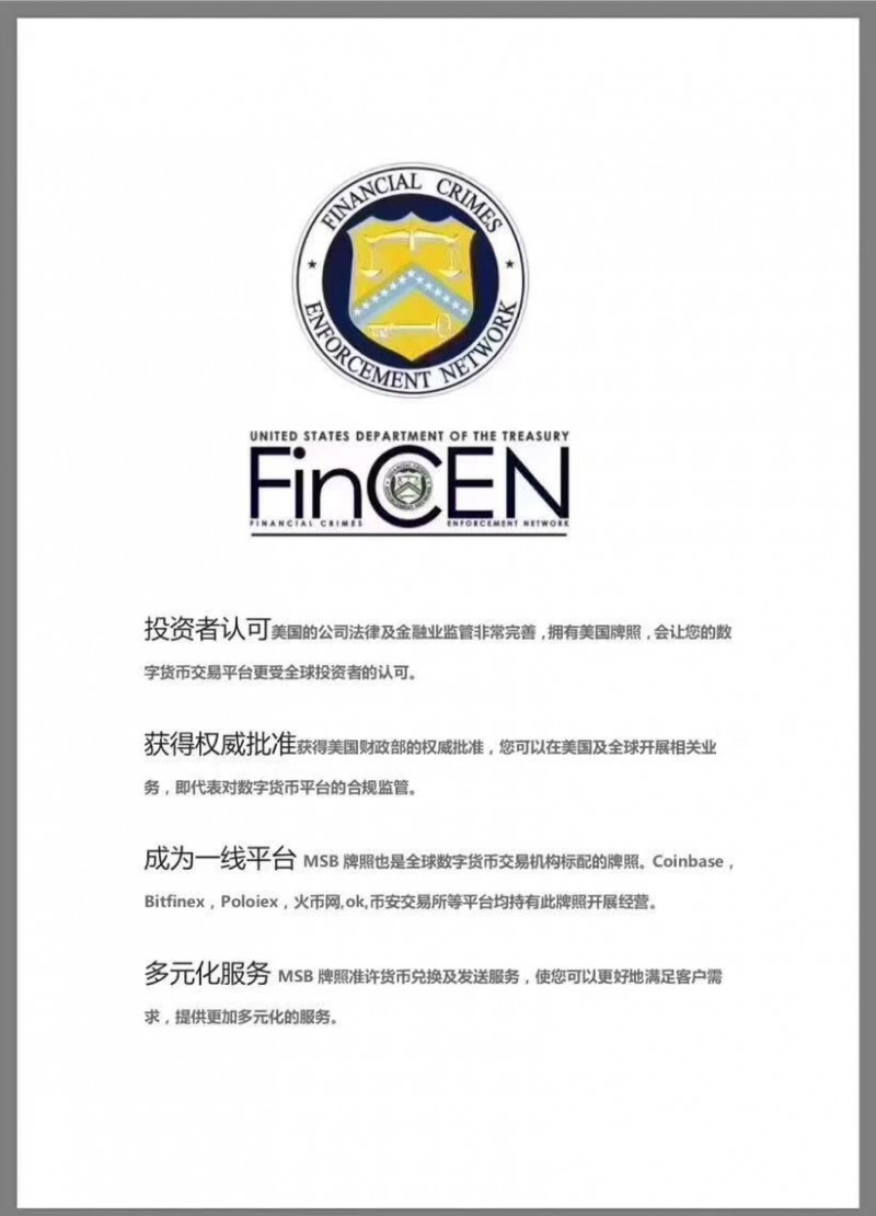 獲得美國財政部的權(quán)威批準,您可以在美國及全球開展相關(guān)業(yè)務,即代表對數(shù)字貨幣平臺的合規(guī)監(jiān)管。