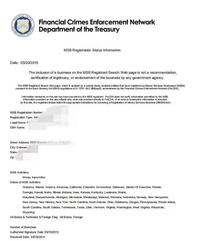 注冊的美國MSB金融牌照,50個(gè)州通用。牌照申請完成后,可以再美國FINCEN財(cái)政部官網(wǎng)查看。