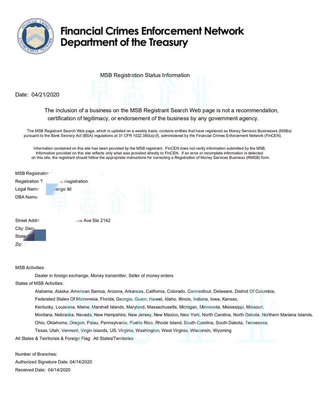 辦理完成后牌照查詢方式:登陸美國財(cái)政部MSB網(wǎng)址查詢牌照號(hào)碼等信息。