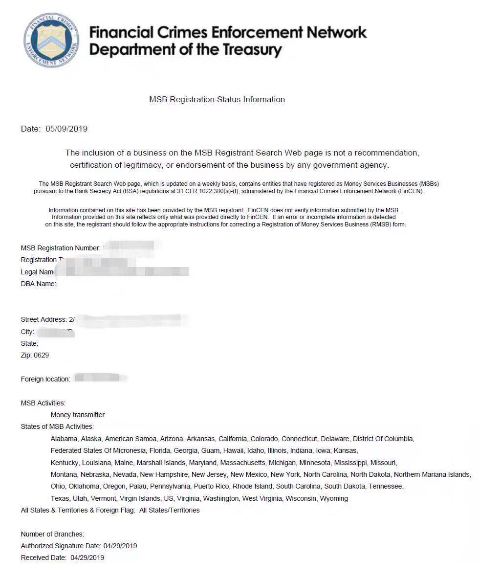 向美國財(cái)政部遞交MSB牌照的申請(qǐng)