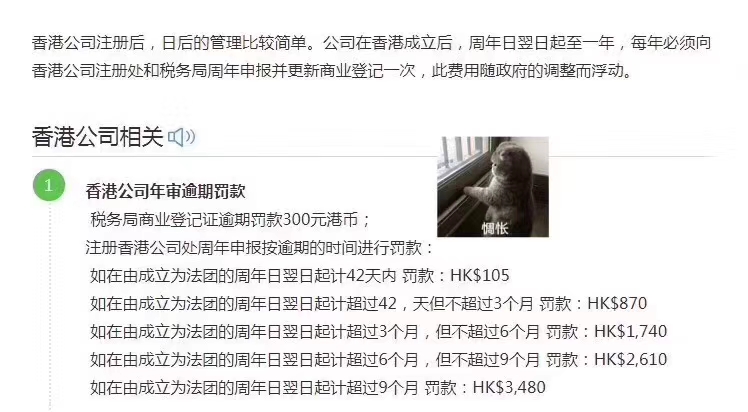 商業(yè)登記證逾期罰款300元港幣,年報按逾期的時間進行罰款: