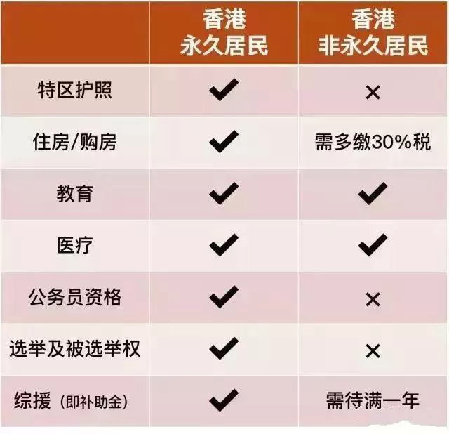 究竟兩者除了居港年期有異外,居民權(quán)利及福利有什么分別?