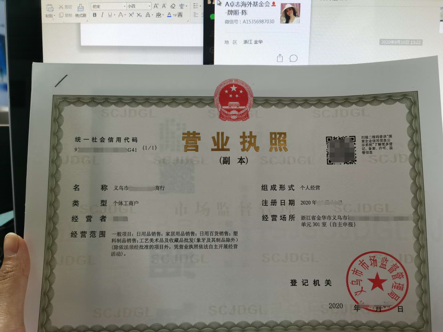 銀行開戶:1)個(gè)體戶法人需親自到義烏,攜帶如下材料身份證件(原件),個(gè)體工商營業(yè)執(zhí)照(原件),護(hù)照/駕照/社???,三選一2) 提前預(yù)約好開戶銀行,法人到義烏后,當(dāng)天開戶當(dāng)天可用。