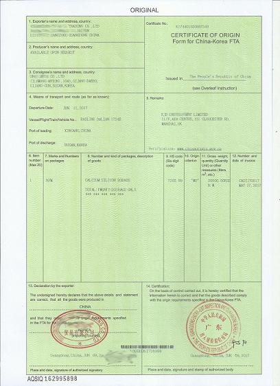1、中韓原產(chǎn)地證FTA。(注:對于2015年12月20日處于運輸過程中、在締約方、或在海關(guān)倉庫暫存的出口貨物,申請人可于2016年3月19日前申請補發(fā)中韓自由貿(mào)易協(xié)定原產(chǎn)地證書。)