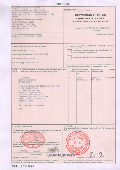 有人會問:我的貨物不是在深圳出口的,是在天津出口的,這樣在深圳簽的中巴產(chǎn)地證可以使用嗎?回復(fù):不管您的貨是在中國哪個港口出口,只要有辦理這種中巴產(chǎn)地證fta證書就可以,還可以享受關(guān)稅優(yōu)惠待遇。沒有限止你的貨在哪個港口出就一定要在當?shù)剞k理簽證的;深圳/廣州簽的證全國各地都是通用的。?