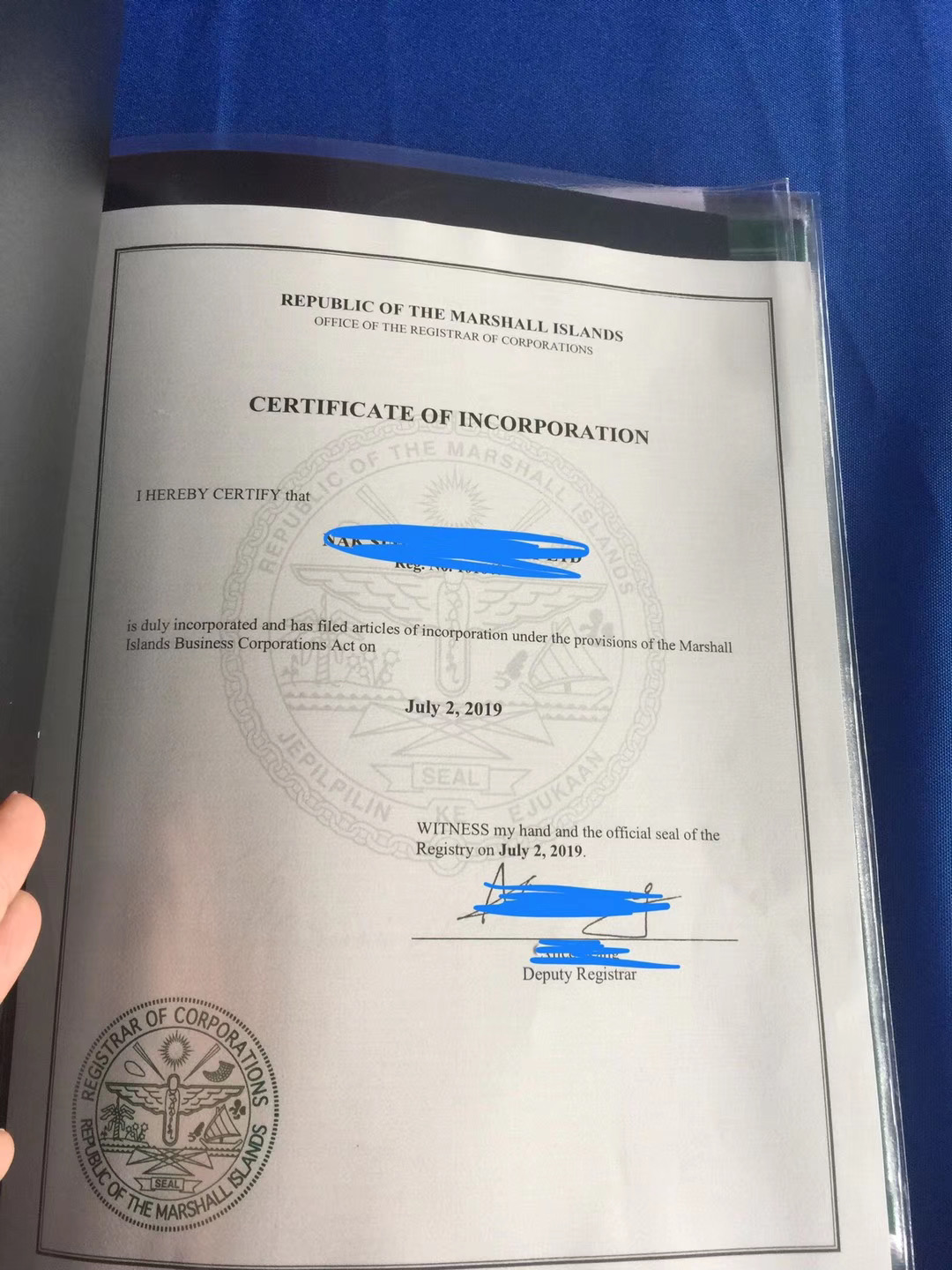 8、馬紹爾公司印鑒:馬紹爾群島公司必須有自己的印鑒,且公司印鑒的式樣需上報(bào)公司注冊(cè)署。