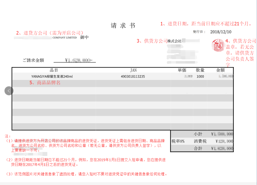 (3)該范例圖片對關(guān)鍵信息做了遮擋處理,請您入駐時不要對進貨憑證中的關(guān)鍵信息做任何處理。