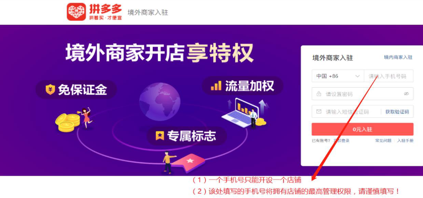 進入網(wǎng)站通過入駐鏈接https://ims.pinduoduo.com/oversea進入入駐頁面。