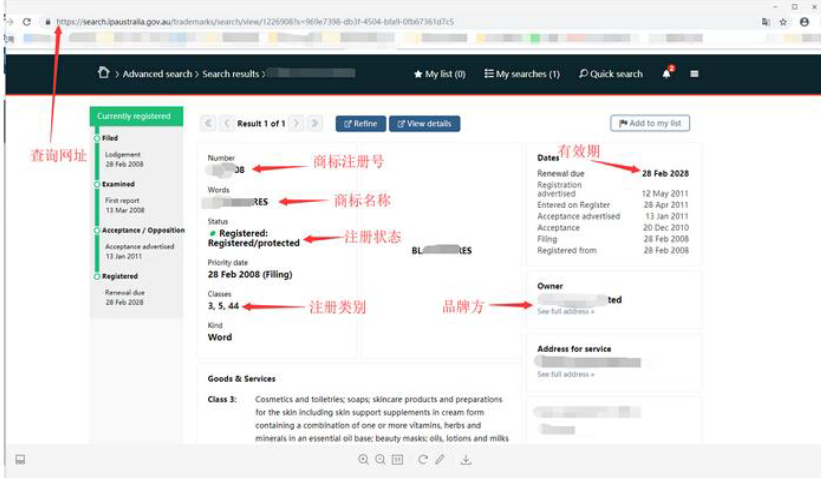 商家若無境外注冊的商標注冊證書,可上傳所經(jīng)營商標在境外商標注冊官網(wǎng)上查詢的詳細信息截圖,截圖需含有查詢網(wǎng)址、商標注冊號、品牌名、注冊狀態(tài)、商標注冊類別、商標持有人、商標有效期。