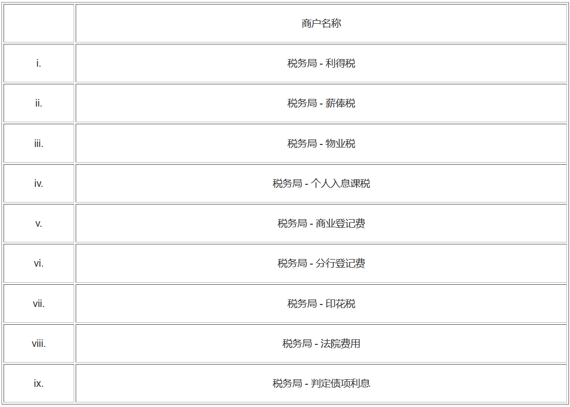 - 選擇商戶名稱(例如:「稅務(wù)局」)