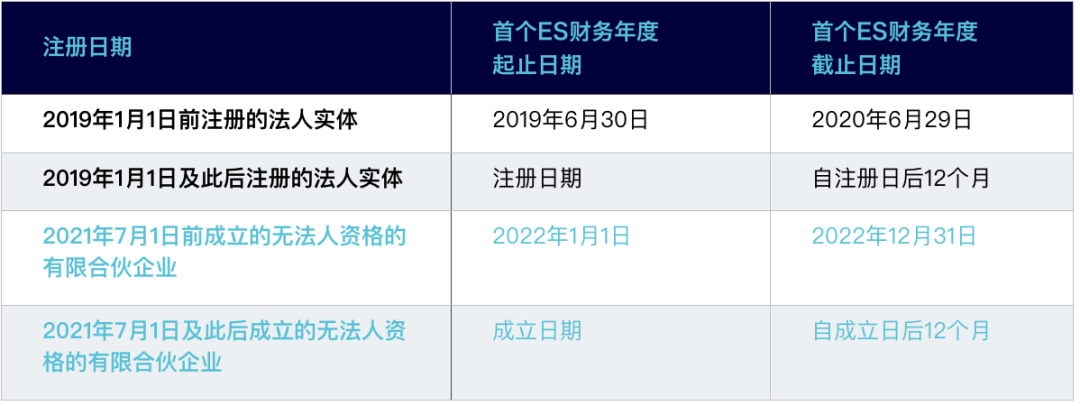 國(guó)際稅務(wù)局對(duì)注冊(cè)于不同時(shí)期的BVI公司或LPs經(jīng)濟(jì)實(shí)質(zhì)的首個(gè)財(cái)務(wù)年度和截止日期做了如下劃分: