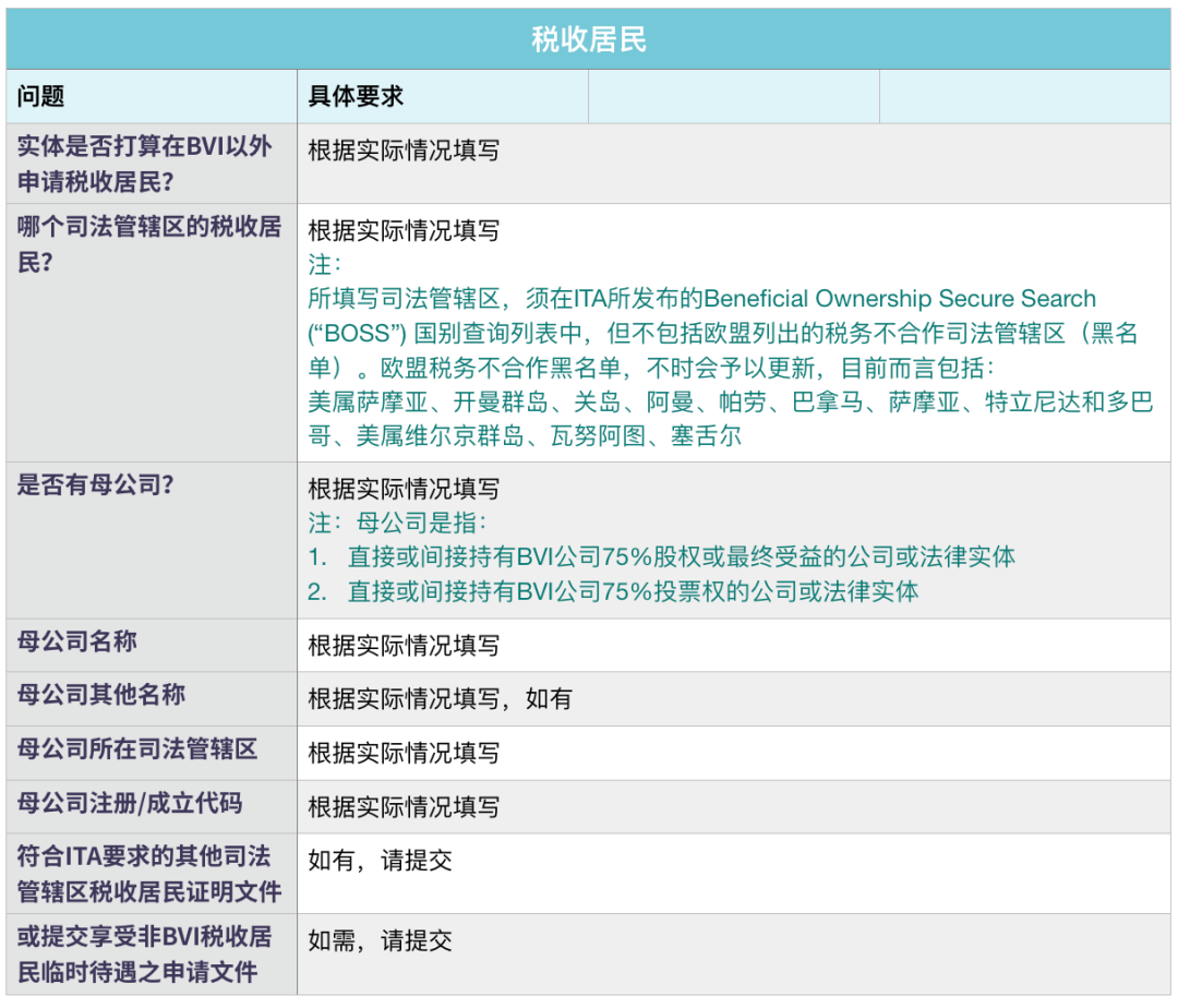 無論是否從事“相關(guān)活動(dòng)”,BVI實(shí)體都必須在“財(cái)務(wù)年度”(financial period)內(nèi)報(bào)告其經(jīng)濟(jì)實(shí)質(zhì)情況,或提供稅收居民及稅收狀況的證據(jù),以證明為“非居民”實(shí)體,從而獲得經(jīng)濟(jì)實(shí)質(zhì)報(bào)告豁免。