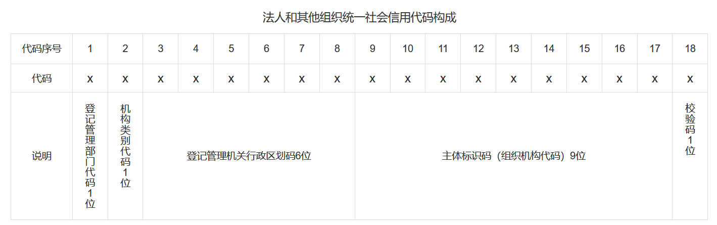 統(tǒng)一社會(huì)信用代碼構(gòu)成