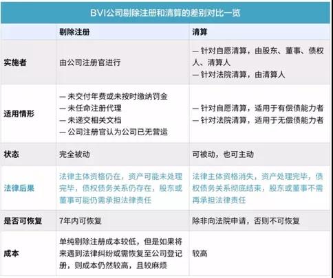 特別值得一提的是,剔除注冊的BVI公司,直到最終被徹底解散前,仍然要滿足經(jīng)濟(jì)實(shí)質(zhì)的要求,會比較麻煩。既然如此,那么,何不選擇清算的方式,畢其功于一役,直接將公司徹底解散呢?
