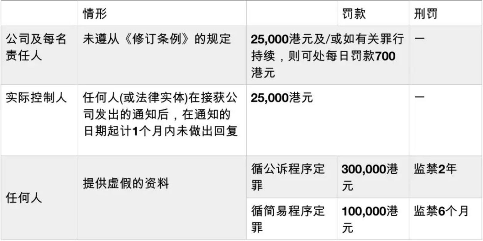 不遵從《2018年公司(修訂)條例》,其相關(guān)后果,具體見下表