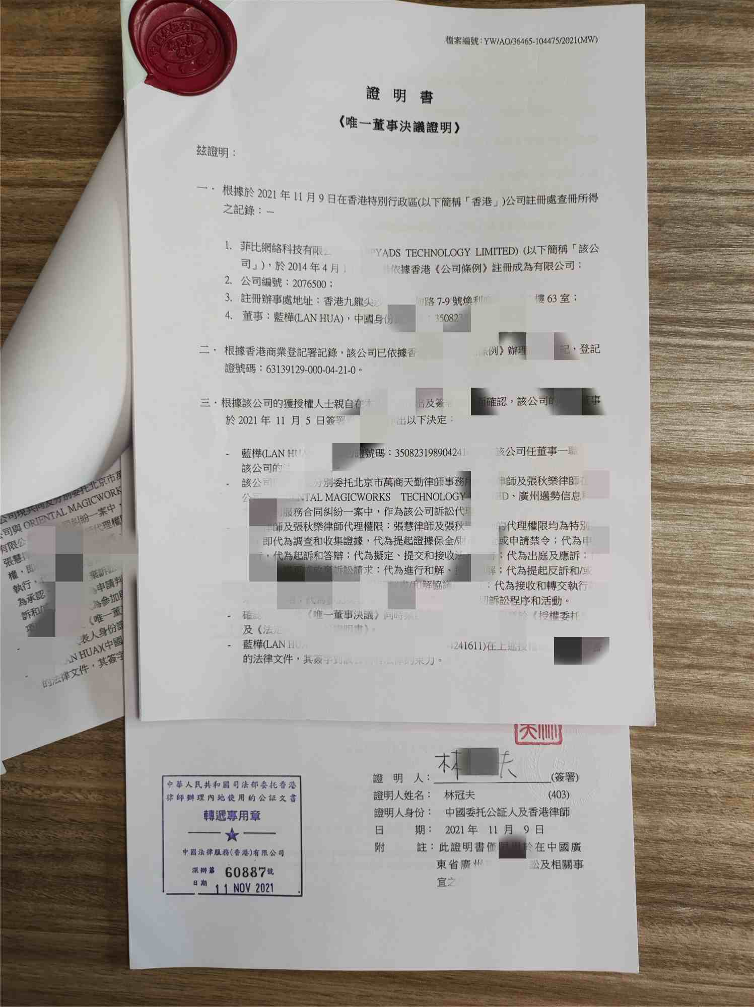 香港公司公證認(rèn)證即公證人依照法定程序證明發(fā)生在香港地區(qū)的法律行為、具有法律意義文書(shū)和事實(shí)的真實(shí)性、合法性。如香港公司在國(guó)內(nèi)投資活動(dòng),設(shè)立外資公司、法律訴訟、股權(quán)質(zhì)押、股權(quán)變更、申請(qǐng)商標(biāo)或董事變更等,都是需要核實(shí)是否真實(shí)存在的。香港公司文件用于中國(guó),也需要辦理公證認(rèn)證手續(xù)。下面小編就來(lái)說(shuō)說(shuō)香港公司文件用于浙江省嘉興市辦理法院訴訟之用的辦理程序。
