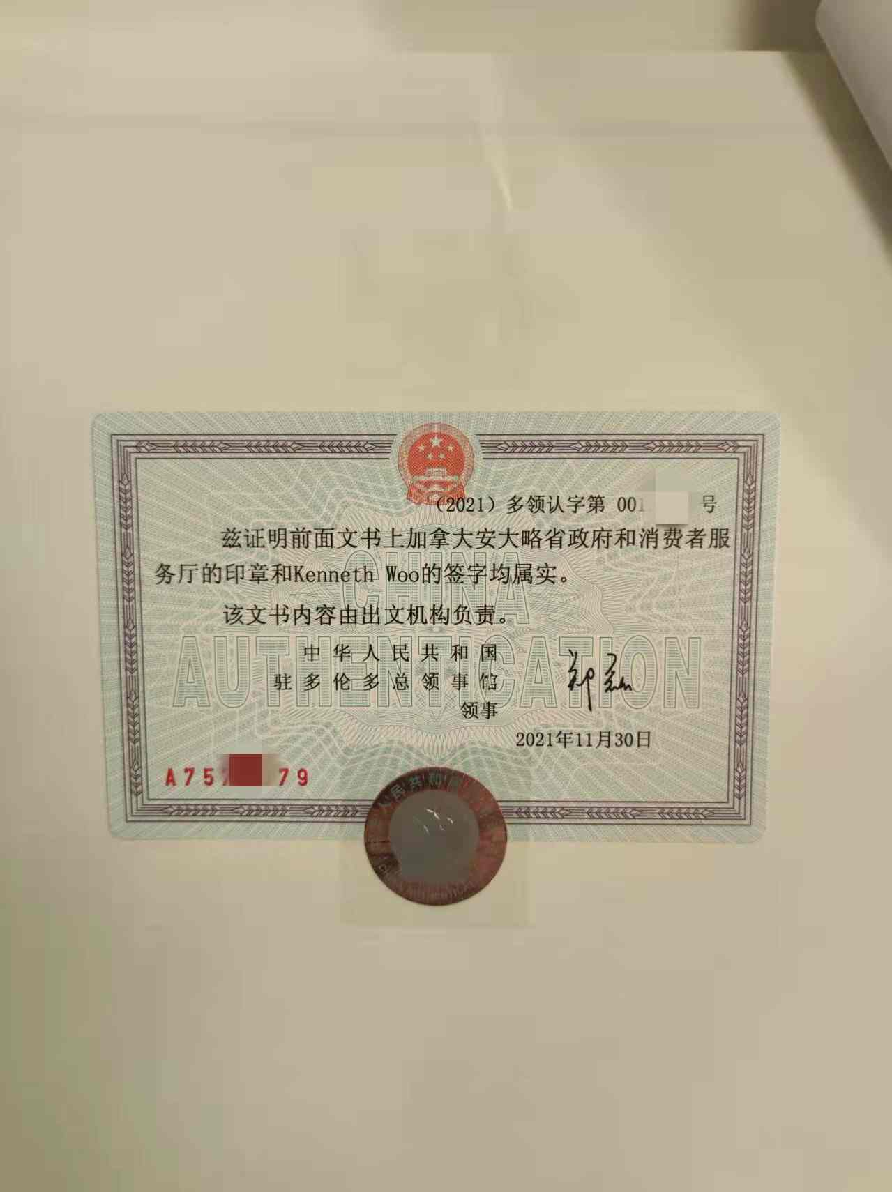 3.將加拿大出生證在省政府認(rèn)證好后再到中國(guó)駐加拿大使館認(rèn)證。