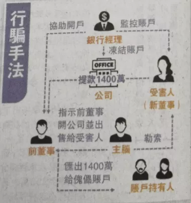 后來警察發(fā)現(xiàn):由于受害人收購香港公司后沒有及時(shí)將銀行戶口轉(zhuǎn)到自己名下,涉事公司某前任董事見有機(jī)可乘,便私自操作將貨款轉(zhuǎn)移至其他賬戶。