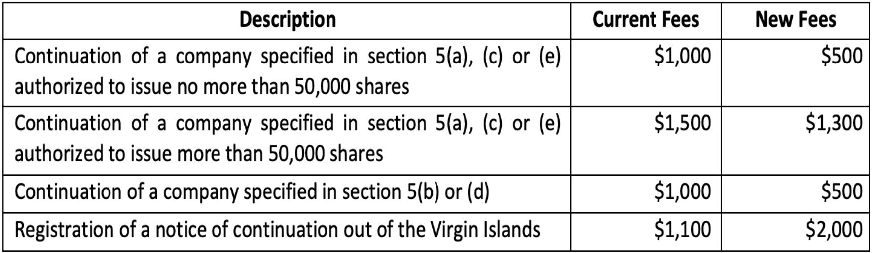 The BVI Financial Services Commission (the "Commission") introduces the BVI Business Companies (Amendment of Schedule 1) Order, 2022 (the "Order"), which comes into force on February 1, 2022. The Order makes changes to fees relevant to the continuation of companies in and outside of the Virgin Islands and foreign companies. Fee changes are outlined below: