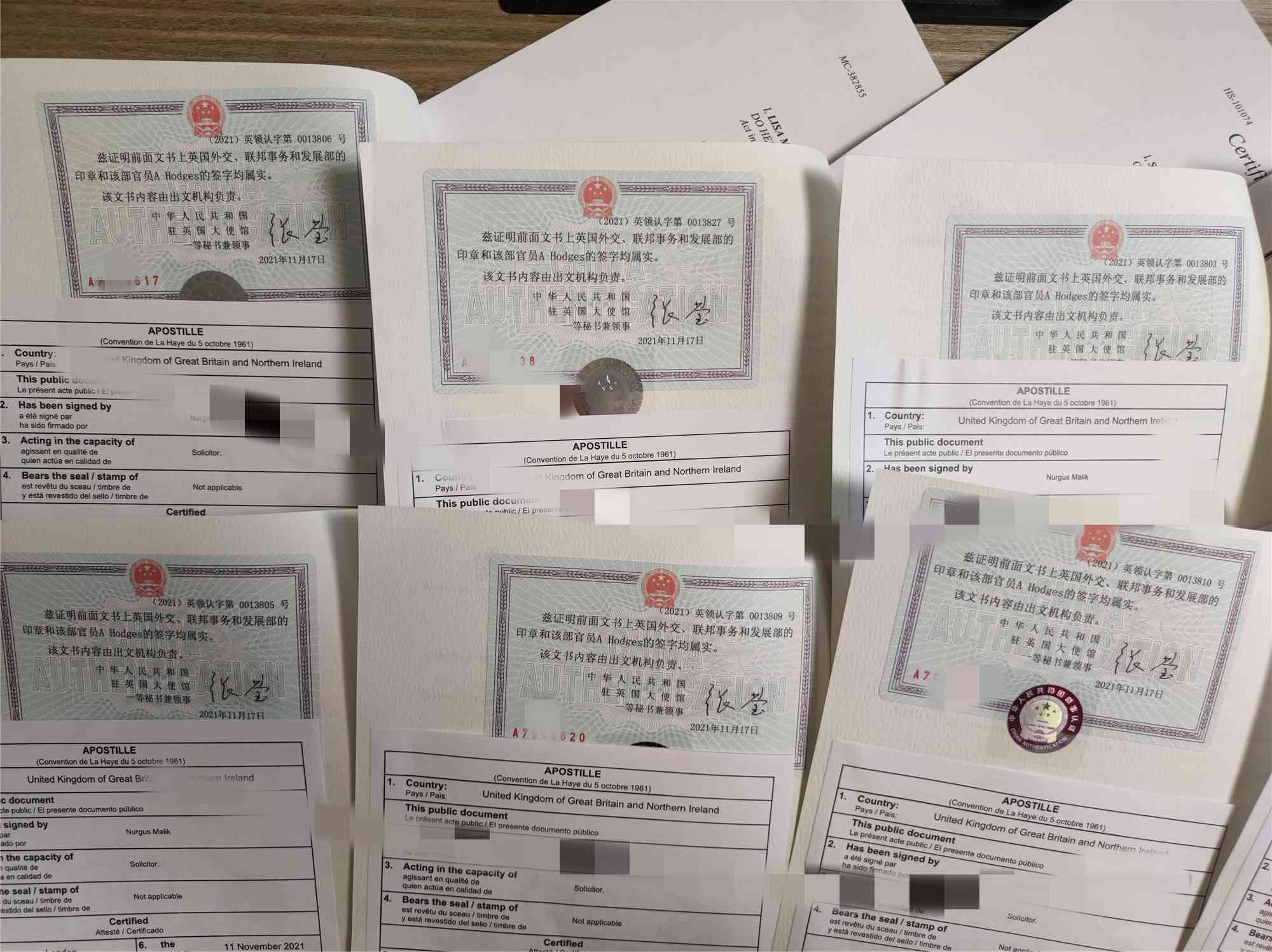1、交由英國當(dāng)?shù)氐墓C律師或者公證處對公司文件進行公證